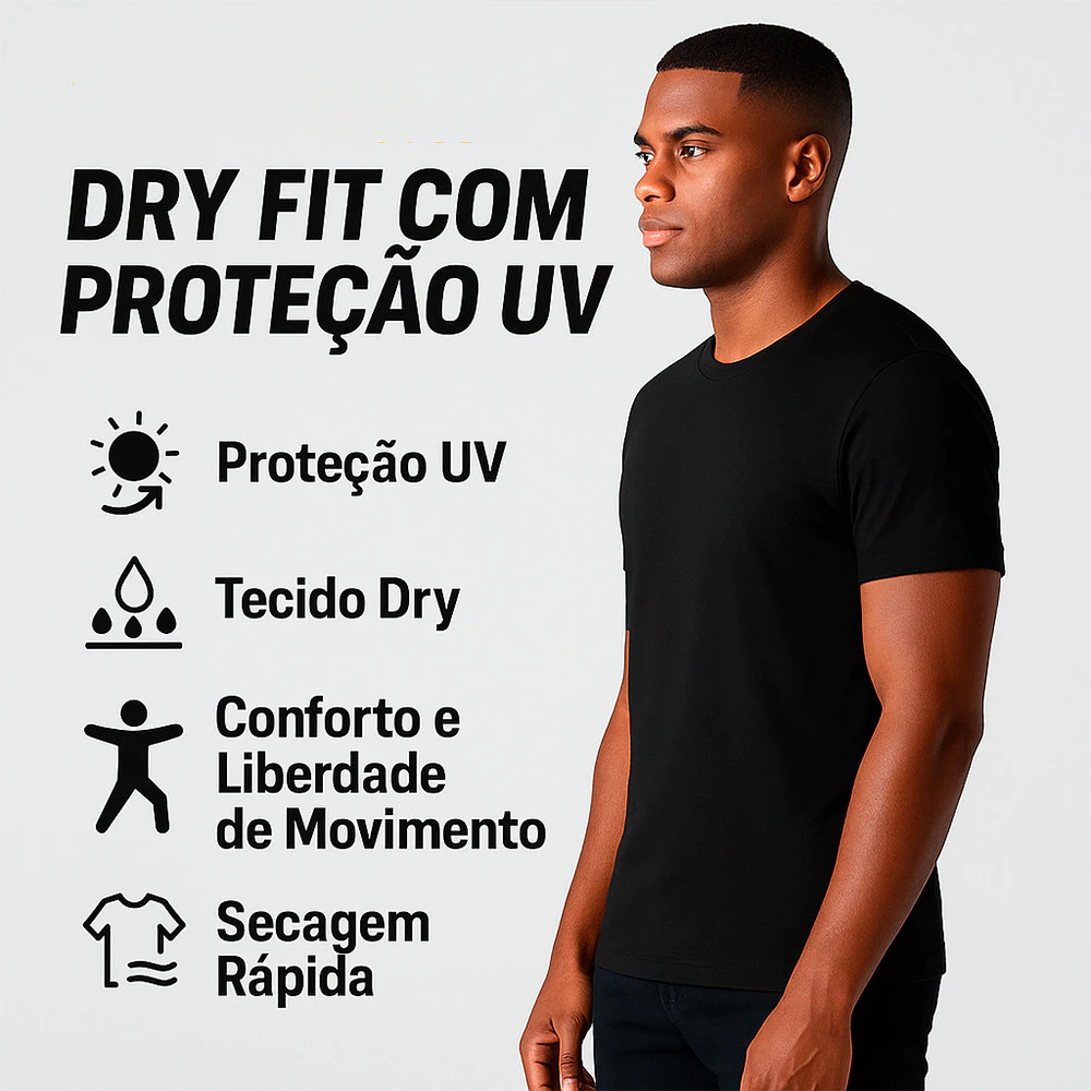 Secagem rápida (modelo dry fit ou poliéster, conforme variação)